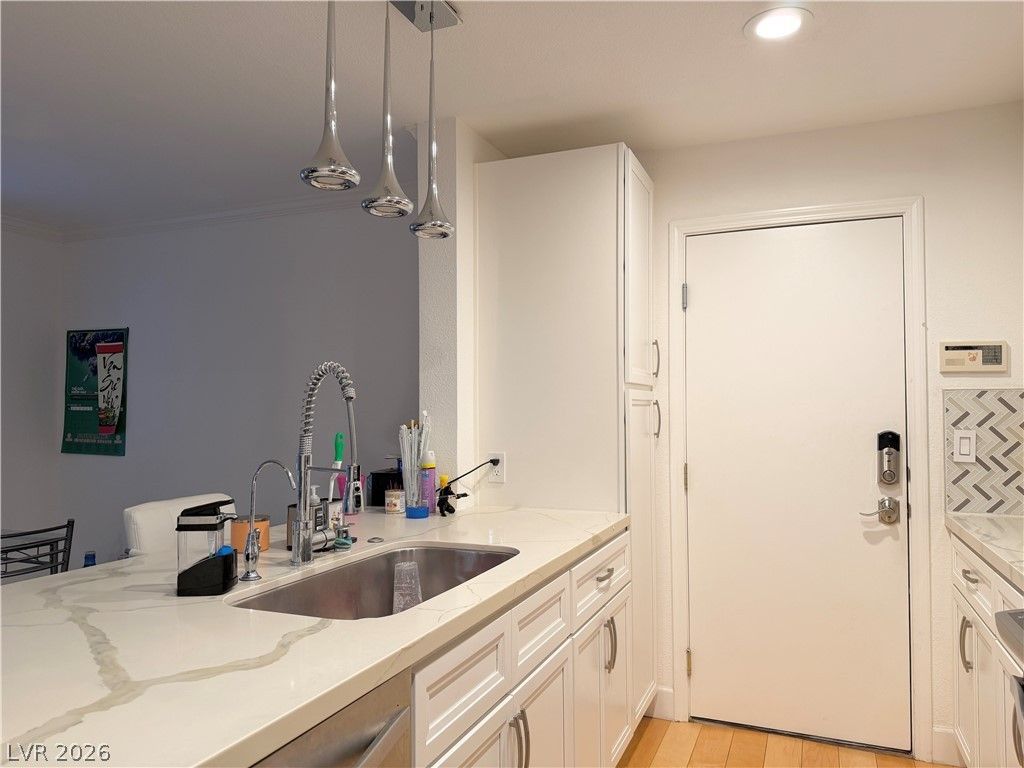 3-bedroom, 1¾-bath condo in a highly desirable gated community near Summerlin, Boca Park, and Tivoli Village. The neighborhood is mostly owner-occupied, offering a quiet, well-maintained environment close to premier shopping and dining. This beautifully updated unit includes an attached 2-car garage with direct entry and offers stunning pool and fountain views. Upgrades continue throughout with high-end maple engineered hardwood flooring, smart-home lighting, plantation shutters, a cozy fireplace, and a private outdoor patio. Both bathrooms are tastefully finished with Carrara marble, Grohe fixtures, and shaker-style vanities, while the primary bath offers a walk-in shower. All three bedrooms include custom closet organizers. In-unit laundry and extensive garage cabinetry provide added convenience. One of the best units in the community?this is a must-see.